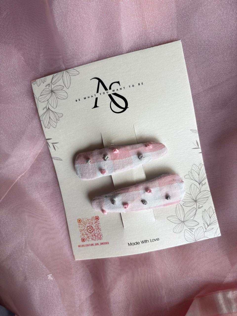 Cute pink clips with 🧵